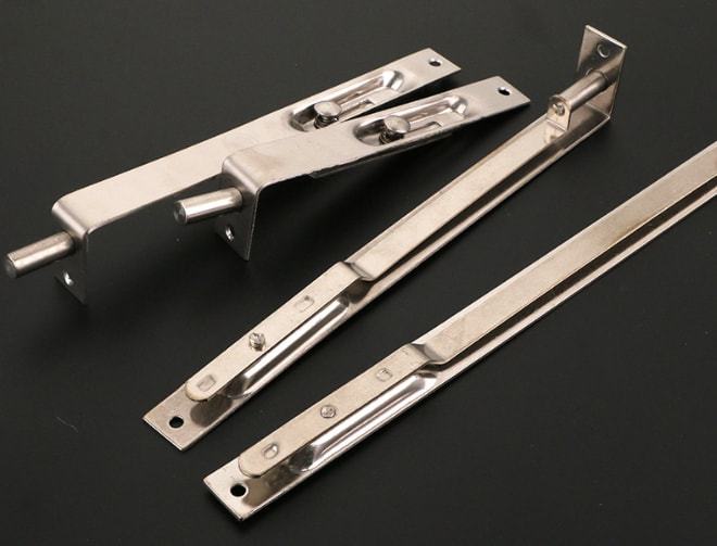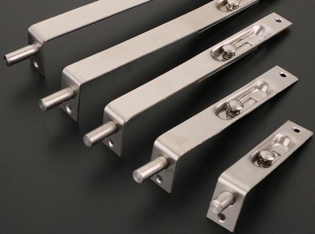 虽然说现在出现了很多的电子感应门,但是这些门都多说只会在公司或者办公室里使用,在家里其实最简洁的插销还是较常见的。插销的广泛应用并不是没有其道理,首先它是一个简单部件,非常便于安装和更换,而且都以坚硬的金属为主。其造型分为两个部分,其一是带有可活动的杆,其二带有“鼻儿”,就这么简单的造型,起到的安全防范性还是非常强的。通常安装时是把带杆的部分固定在门上,鼻儿固定在门框上,位置是对应的。